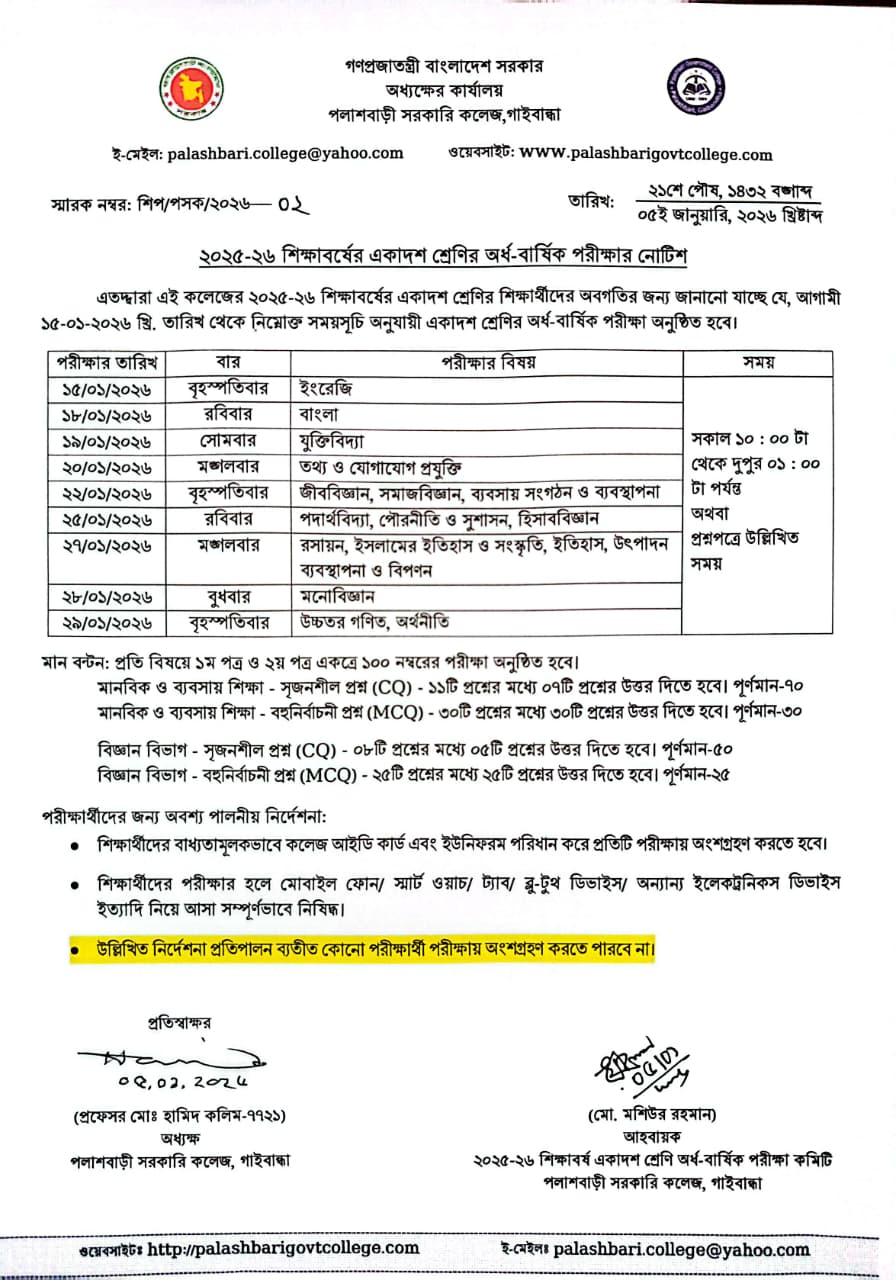 - ২০২৫-২০২৬ শিক্ষাবর্ষের শিক্ষার্থীদের অর্ধ-বার্ষিক পরীক্ষা গ্রহণ প্রসঙ্গে নোটিশ