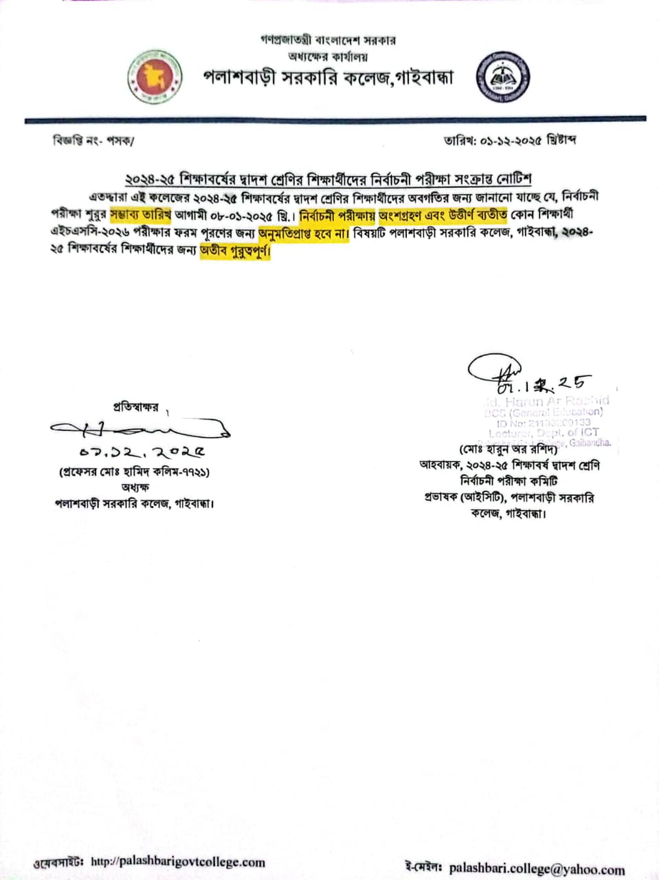 - এইচএসসি ২০২৫-২০২৬ শিক্ষাবর্ষের কলেজে ভর্তি সম্পর্কিত নোটিশ