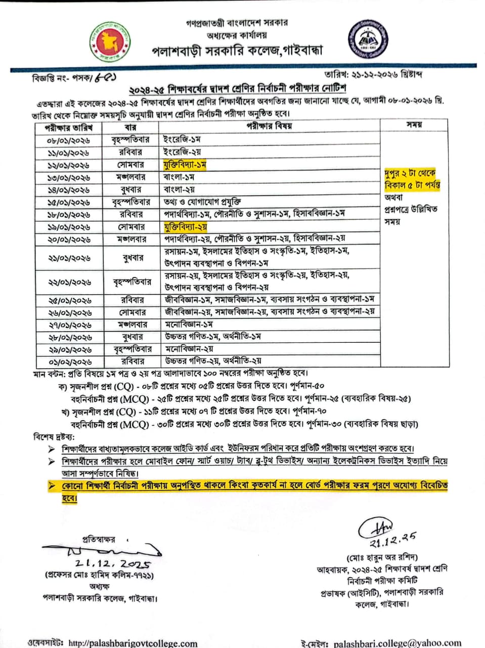 - ২০২৪-২০২৫ শিক্ষাবর্ষের দ্বাদশ শ্রেণির শিক্ষার্থীদের নির্বাচনী পরীক্ষা সংক্রান্ত নোটিশ