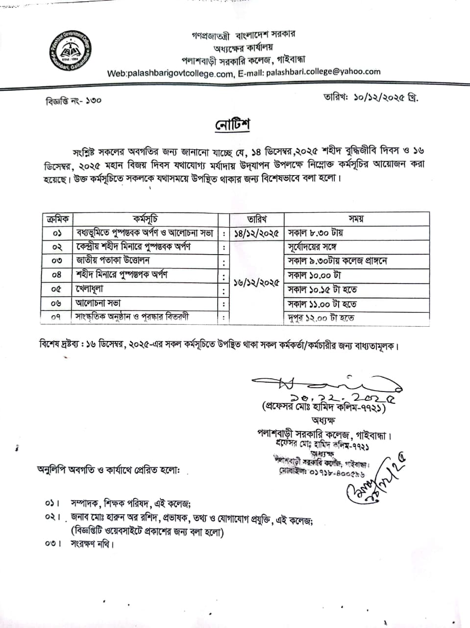 - ১৪ ডিসেম্বর,২০২৫ শহীদ বুদ্ধিজীবী দিবস এবং ১৬ ডিসেম্বর,মহান বিজয় দিবস উদযাপন উপলক্ষ্যে নোটিশ
