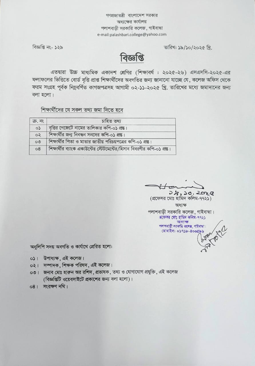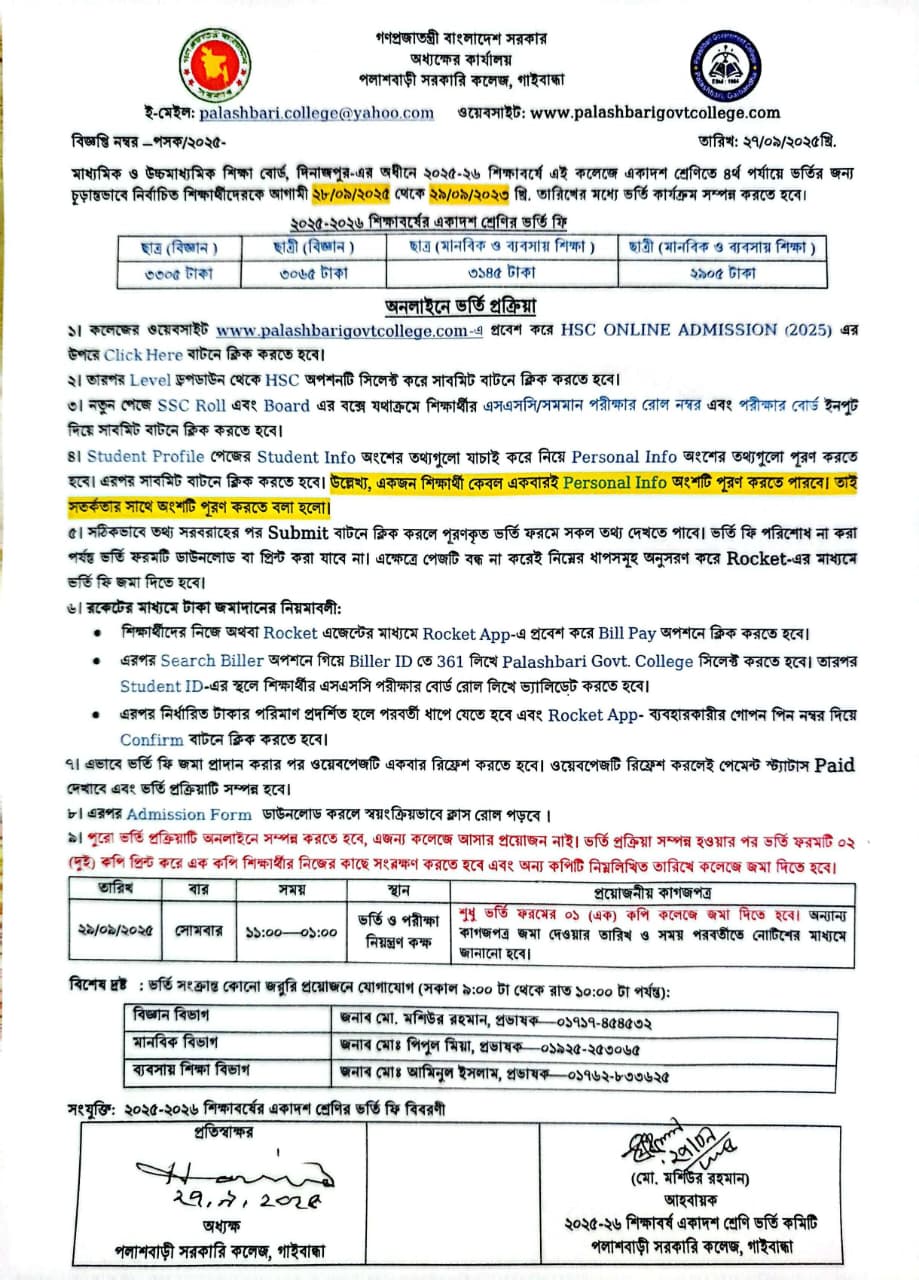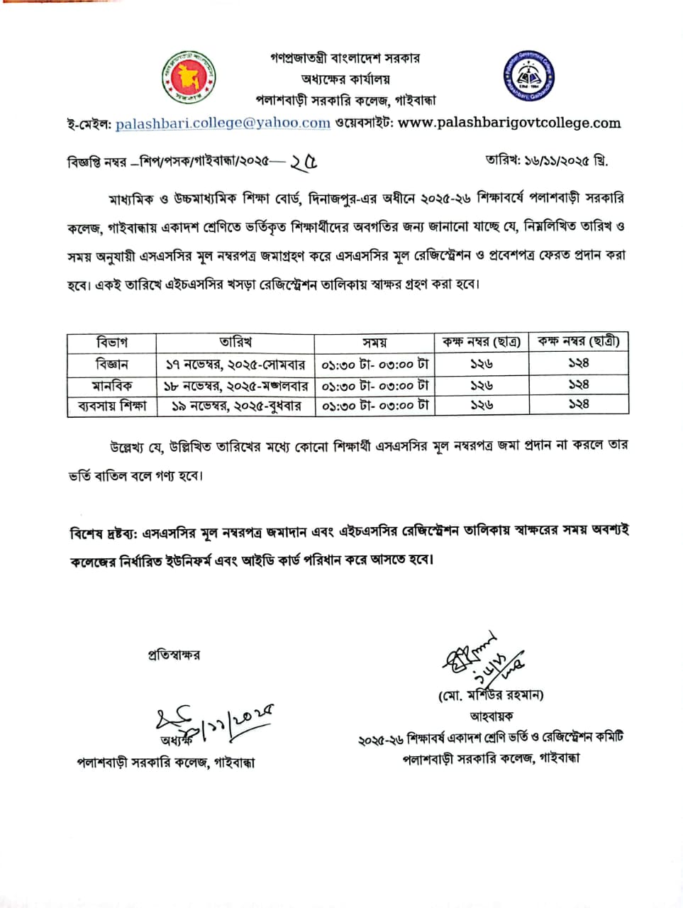 - ২০২৫-২০২৬ শিক্ষাবর্ষে একাদশ শ্রেণিতে ভর্তি সম্পর্কিত নোটিশ