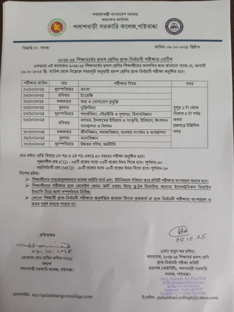 - ২০২৪-২০২৫ শিক্ষাবর্ষে দ্বাদশ শ্রেণির প্রাক-নির্বাচনী পরীক্ষার রুটিন সংক্রান্ত নোটিশ