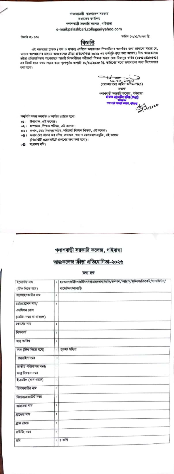 - আন্তঃকলেজ ক্রীড়া প্রতিযোগিতা ২০২৬ প্রসঙ্গে নোটিশ