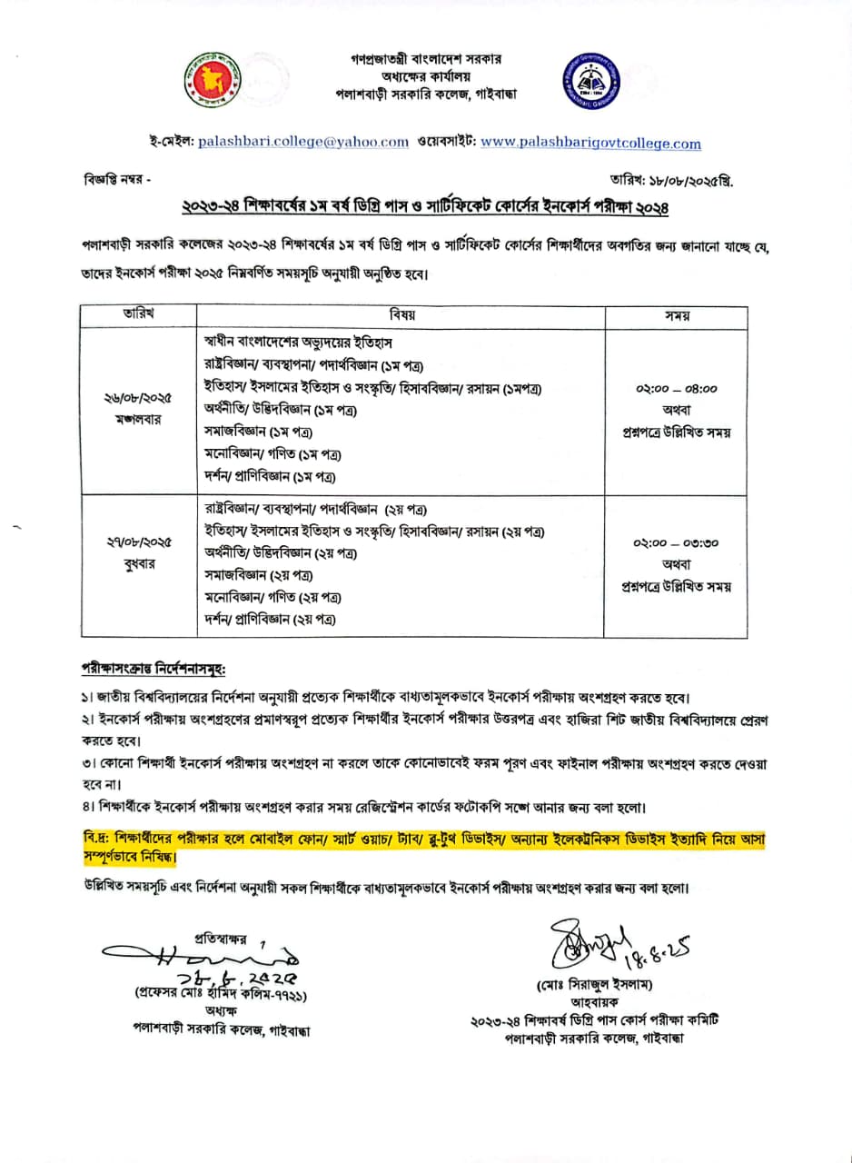 - ২০২৩-২৪ শিক্ষাবর্ষের ১ম বর্ষ ডিগ্রী পাস ও সার্টিফিকেট কোর্সের ইনকোর্স পরীক্ষা সম্পর্কিত নোটিশ
