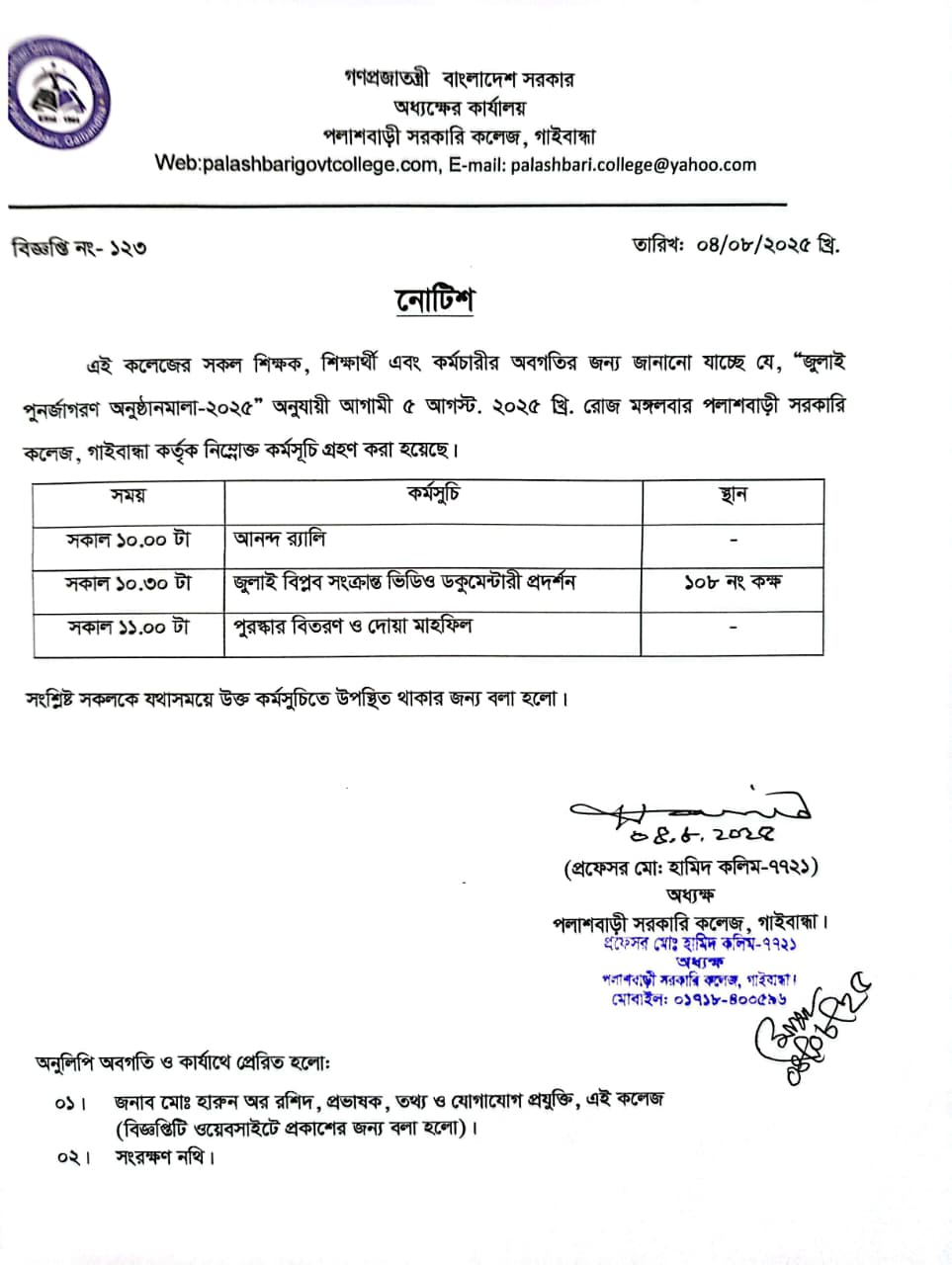 - "জুলাই পুনর্জাগরণ অনুষ্ঠানমালা-২০২৫" সম্পর্কিত নোটিশ