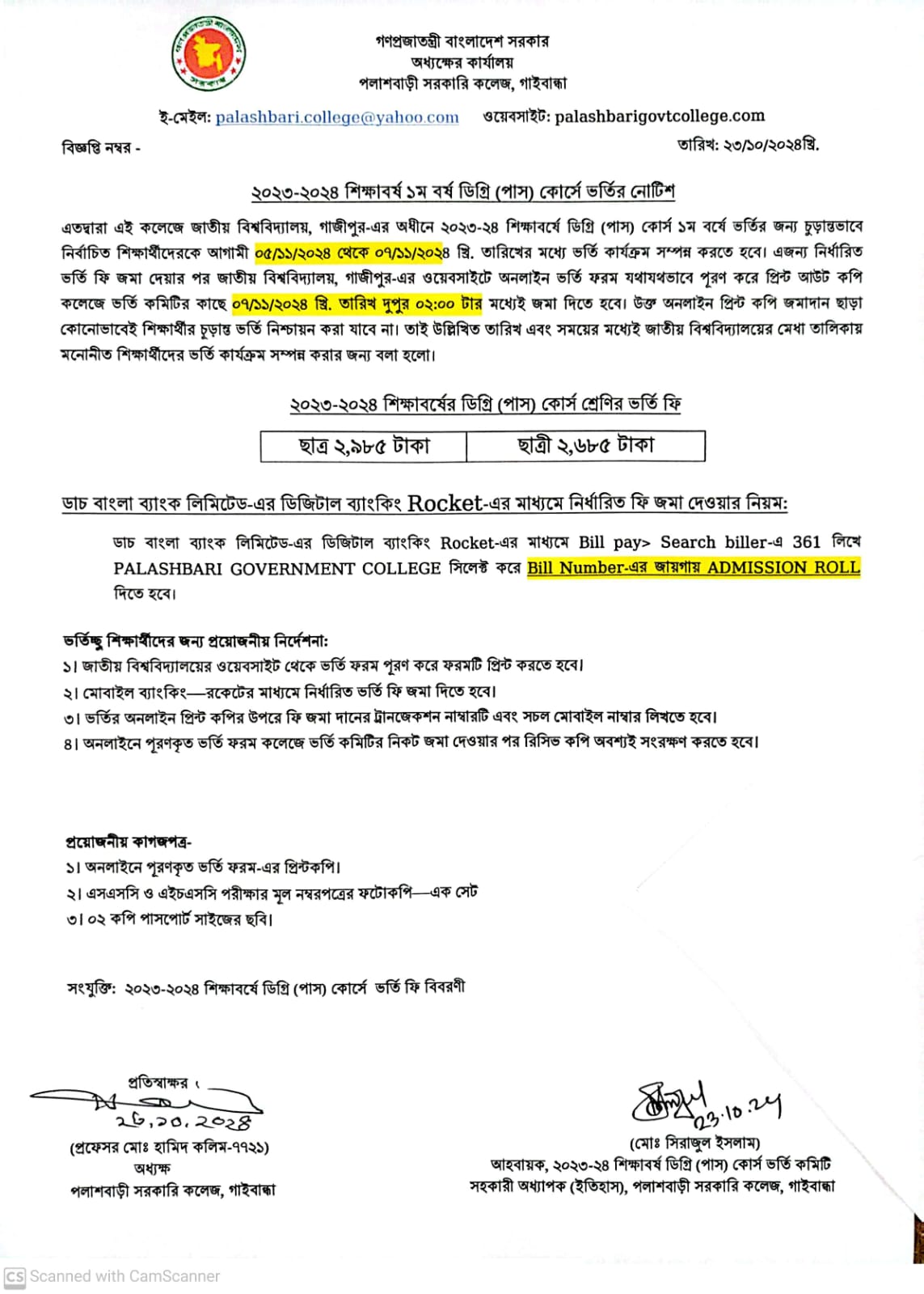 - ২০২৩-২৪ শিক্ষাবর্ষ ১ম বর্ষ ডিগ্রী(পাস) কোর্সে ভর্তি সম্পর্কিত নোটিশ