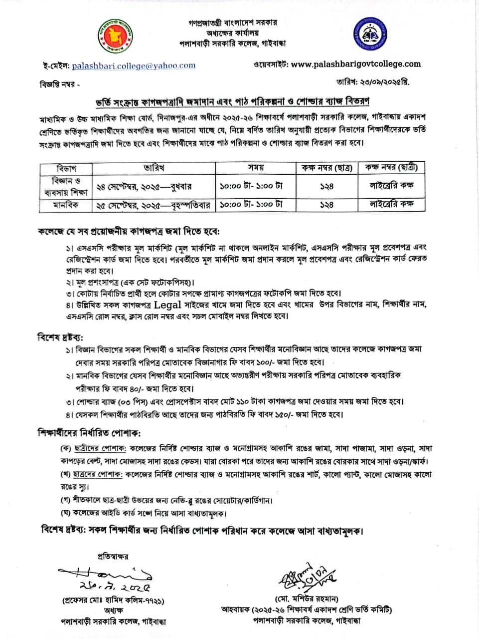 - ২০২৫-২০২৬ শিক্ষাবর্ষে একাদশ শ্রেণির সিক্ষার্থীদের কলেজ ইউনিফর্ম সংক্রান্ত নোটিশ
