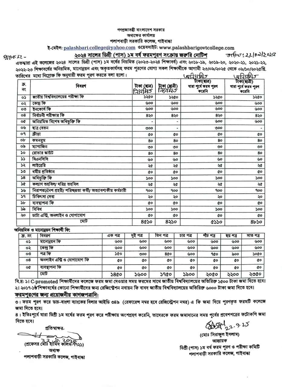 - ২০২৪-২০২৫ শিক্ষাবর্ষ ১ম বর্ষ ডিগ্রি (পাস) কোর্সে ভর্তির ফি বিবরণী প্রসঙ্গে নোটিশ