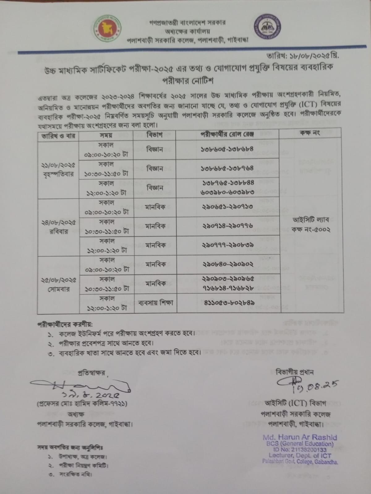- এইচএসসি পরীক্ষা-২০২৫ এর আইসিটি ব্যবহারিক পরীক্ষা সম্পর্কিত নোটিশ