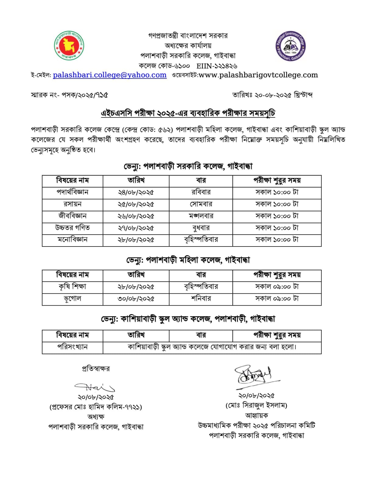 - এইচএসসি পরীক্ষা-২০২৫ এর আইসিটি ব্যতীত অন্যান্য বিষয়ের ব্যবহারিক পরীক্ষা সম্পর্কিত নোটিশ